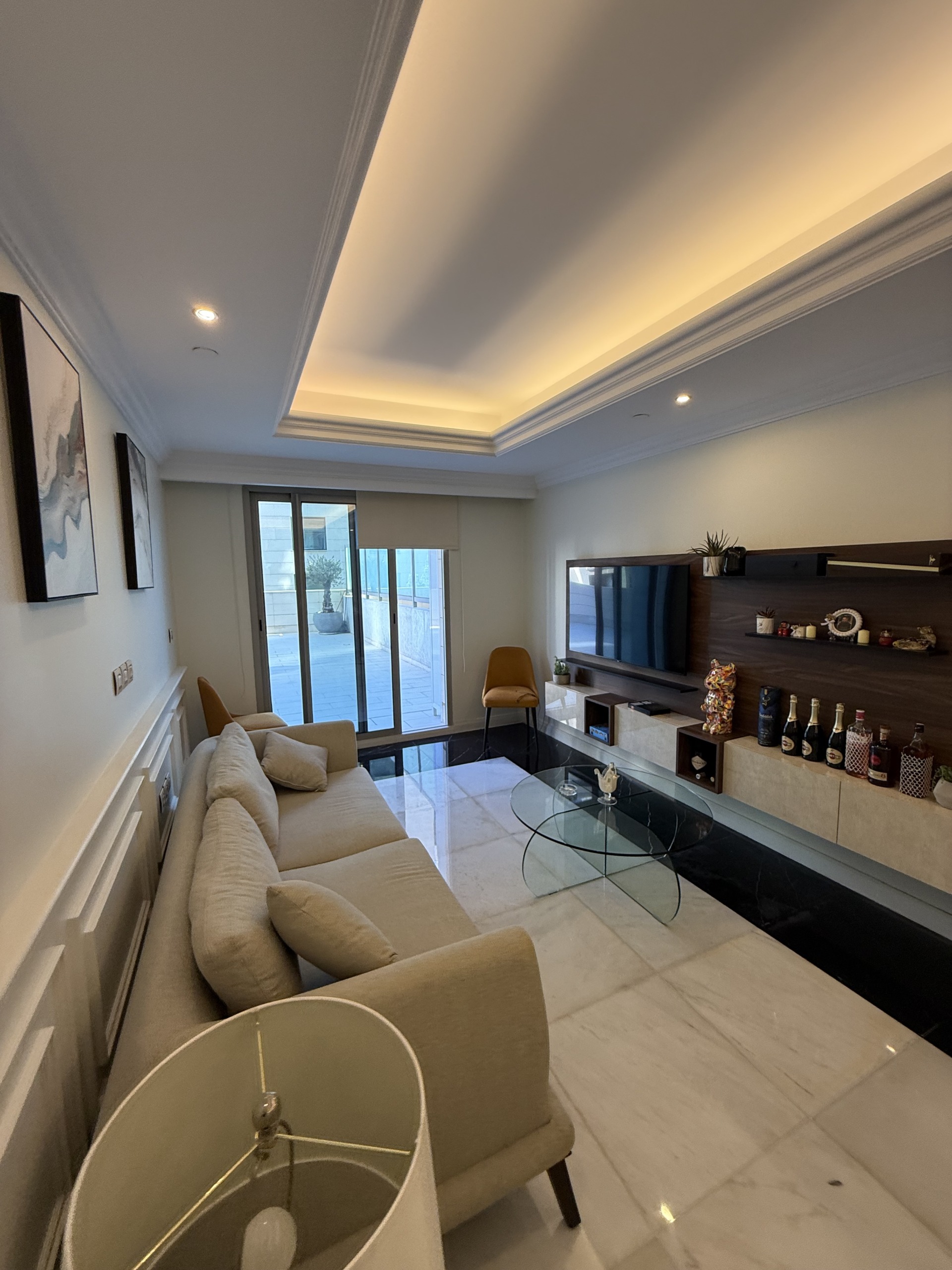 The upgraded apartment possesses an open modern layout, composed of 1 master bedrooms,  The modern apartment possesses a private Terrace accessible from the living room and the master bedrooms.
